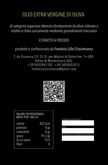Estratto a freddo ed unicamente in maniera meccanica, con un frantoio a ciclo continuo
